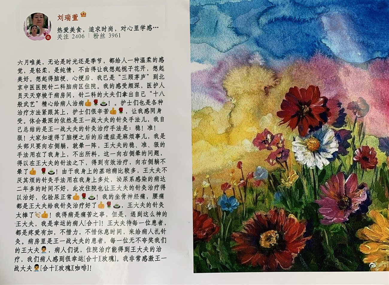 感谢信:感谢针二病房王一战大夫