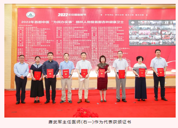 在改善医疗服务行动中,我院夯实以人民为中心的中医医疗服务理念,努力提升人民群众看病就医感受,在此次表彰中,付清楠主治医师、唐武军主任医师获得首都中医“为民办实事榜样人物暨首都杏林健康卫士”荣誉称号。