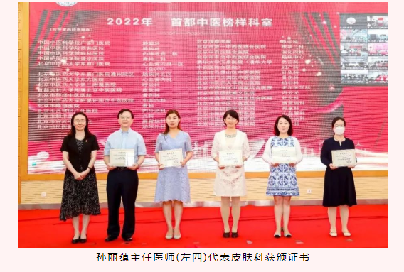 皮肤科荣获首都中医“榜样科室”。皮肤科是国家临床重点专科、国家中医药管理局首批重点专科和重点学科。积极开展互联网诊疗、图文咨询,设立特色外治专技门诊,开展针灸、埋线、瘢痕综合治疗、脱发综合治疗等,积极创新诊疗模式,突出科室特色。