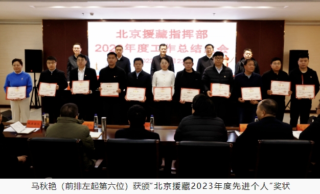 近日,北京市援藏指挥部召开2023年度工作总结大会,对3个先进支部、73名先进个人进行表彰,北京中医医院援藏干部、拉萨市人民医院医务部主任马秋艳获评“北京援藏2023年度先进个人”称号。