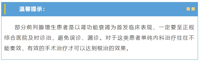 不愿终生透析的梁先生一听有希望可以不通过血液透析来治疗肾功能衰竭,顿时喜出望外,当下决定住进泌尿外科接受进一步检查。泌尿外科医疗团队经过详尽的检查分析,最终得出结论——导致梁先生肾功能衰竭的“特殊因素”是“前列腺增生”,有必要进行微创前列腺切除术,在术后如多次复查肾功能正常的话,梁先生就很有可能不用再次透析了。