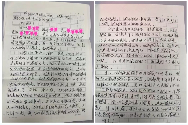 “我老伴和我的健康都离不开北京中医医院医疗团队的呵护和治疗!”王叔叔痊愈后特地送了一份手写感谢信,表达自己的感激之情。