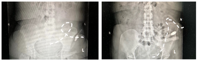 2周后,腹透中心医疗团队再次与老李取得了联系,按照建议,老李饮食上荤素搭配,增加运动,按时排便,腹透液逐渐排出顺畅。老李再次做了腹平片,发现这根舞动的导管已经悄悄下垂,回到了该有的位置。