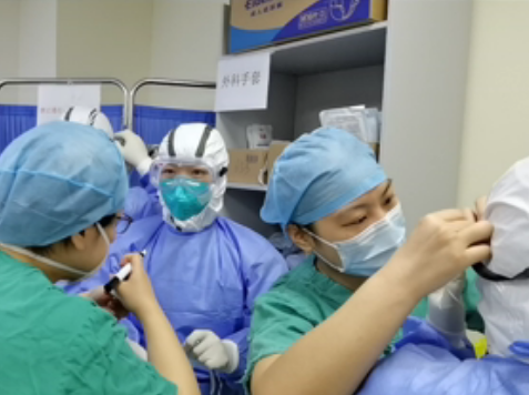 援鄂医疗队队长陈明、队员陈腾飞进入隔离病房工作