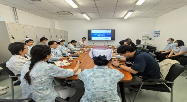 在现场讨论环节,各部门老师结合自身专业,针对护理质量与安全管理提出了诸多合理化建议。护士长刘丽娟从循证的角度阐述跌倒带来的危害及采取防控措施的必要性;医务处副处长李楠从医疗的角度强调医护工作良好结合有利于降低不良事件的发生。总务处李盈涛提出将定期深入临床检查、维护、更新脱落破损的标识,协助护士为患者创造安全住院环境。医工处王浩宇提出帮助临床优化病区环境,增加适老设施。医辅部门提出了患者外出检查应选择适宜的外出鞋、轮椅固定的要点。护工公司表明临床护工应严格遵守岗位职责,协助护士做好患者生活护理。肾病科邵京华基于丰富的临床护理工作经验,引导护士从改善科室环境、加强健康教育、准确风险评估等方面对患者进行精细化的安全管理。护理部副主任关丽对护士长及质控员们的汇报进行了反馈,提出加强低年资护士同质化、规范化管理,以提升医院整体护理质量。