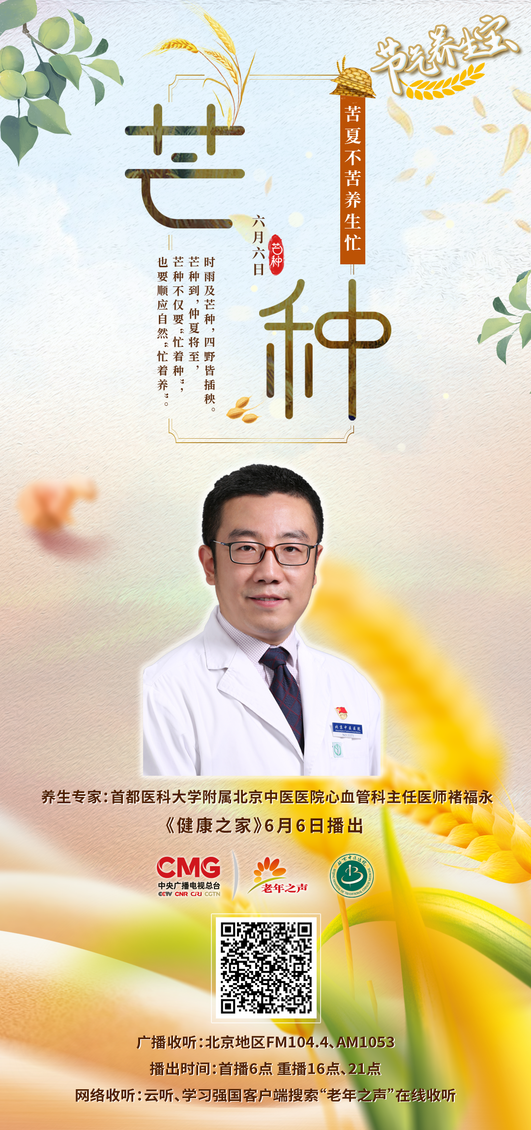 芒种养生该如何做?来听听心血管科褚福永主任医师怎么说。