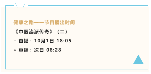 10月1日18:05,呼吸科周继朴主任医师做客CCTV10《健康之路》栏目,为您讲述寒凉派的历史传承。