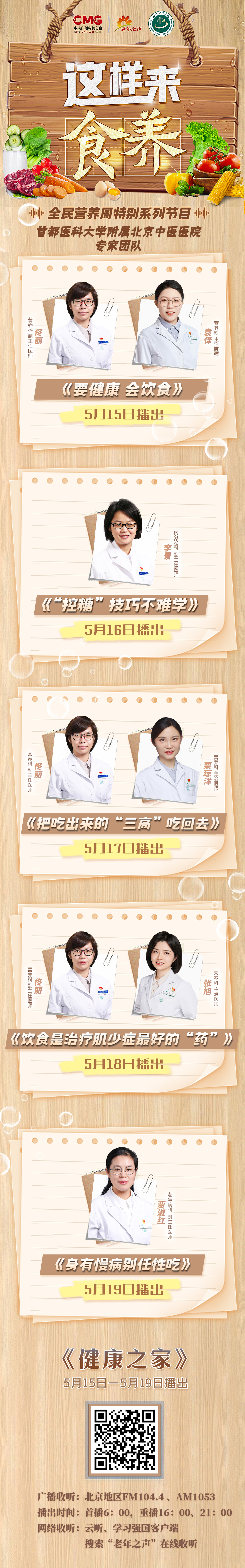 北京中医医院营养科、内分泌科、老年病科专家团队做客中央广播电视总台老年之声,教您“这样来食养”,围绕饮食原则、三高慢病、血糖管理等话题,为您解答膳食营养与健康的常见困惑。