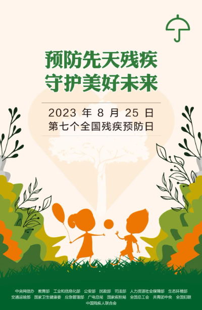 2023年8月25日是全国第七个残疾预防日,今年的活动主题是“预防先天残疾,守护美好未来”。