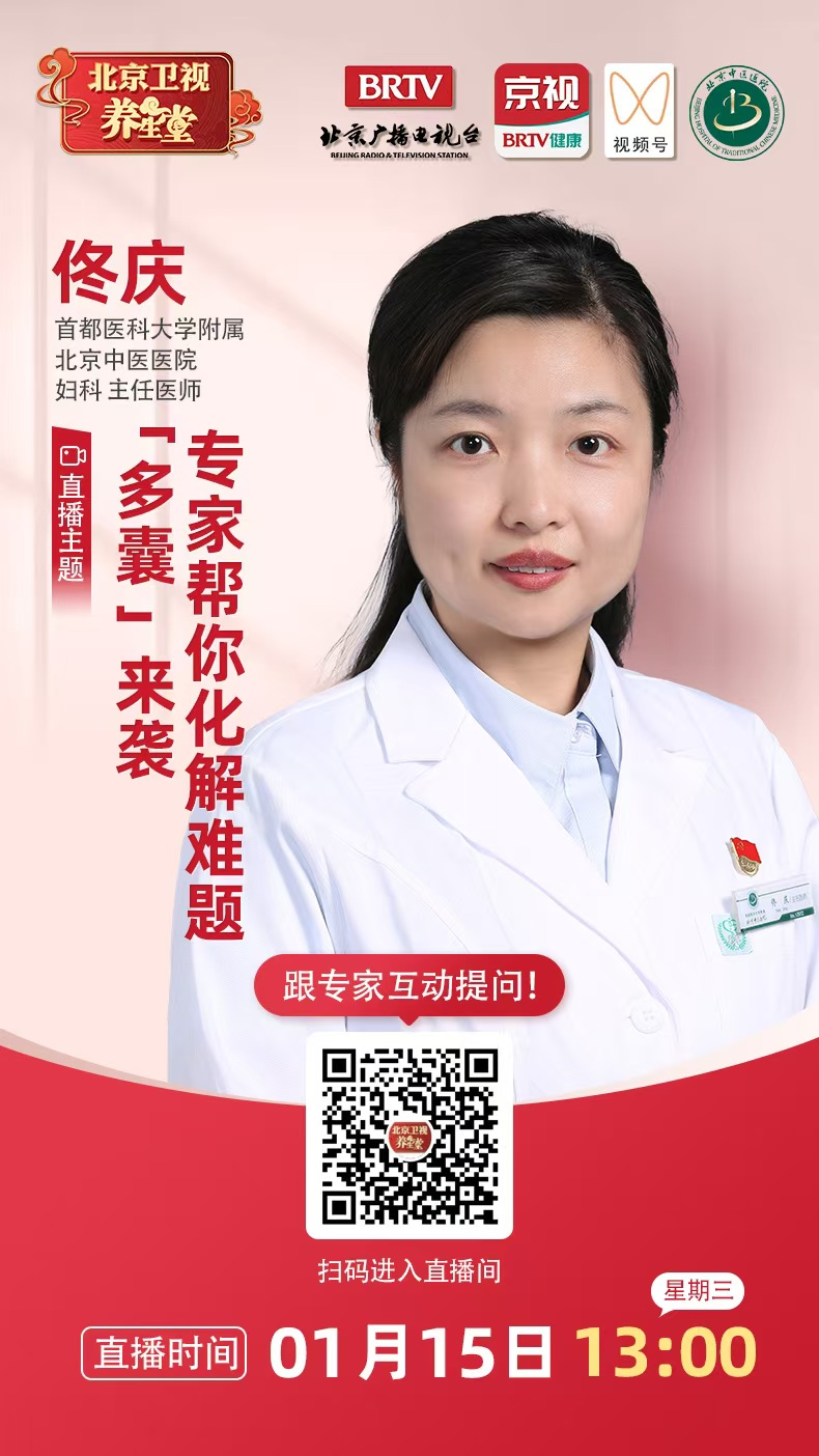 1月15日13:00,首都医科大学附属北京中医医院妇科主任医师佟庆做客北京卫视养生堂科普直播间,为您讲解多囊卵巢综合征。