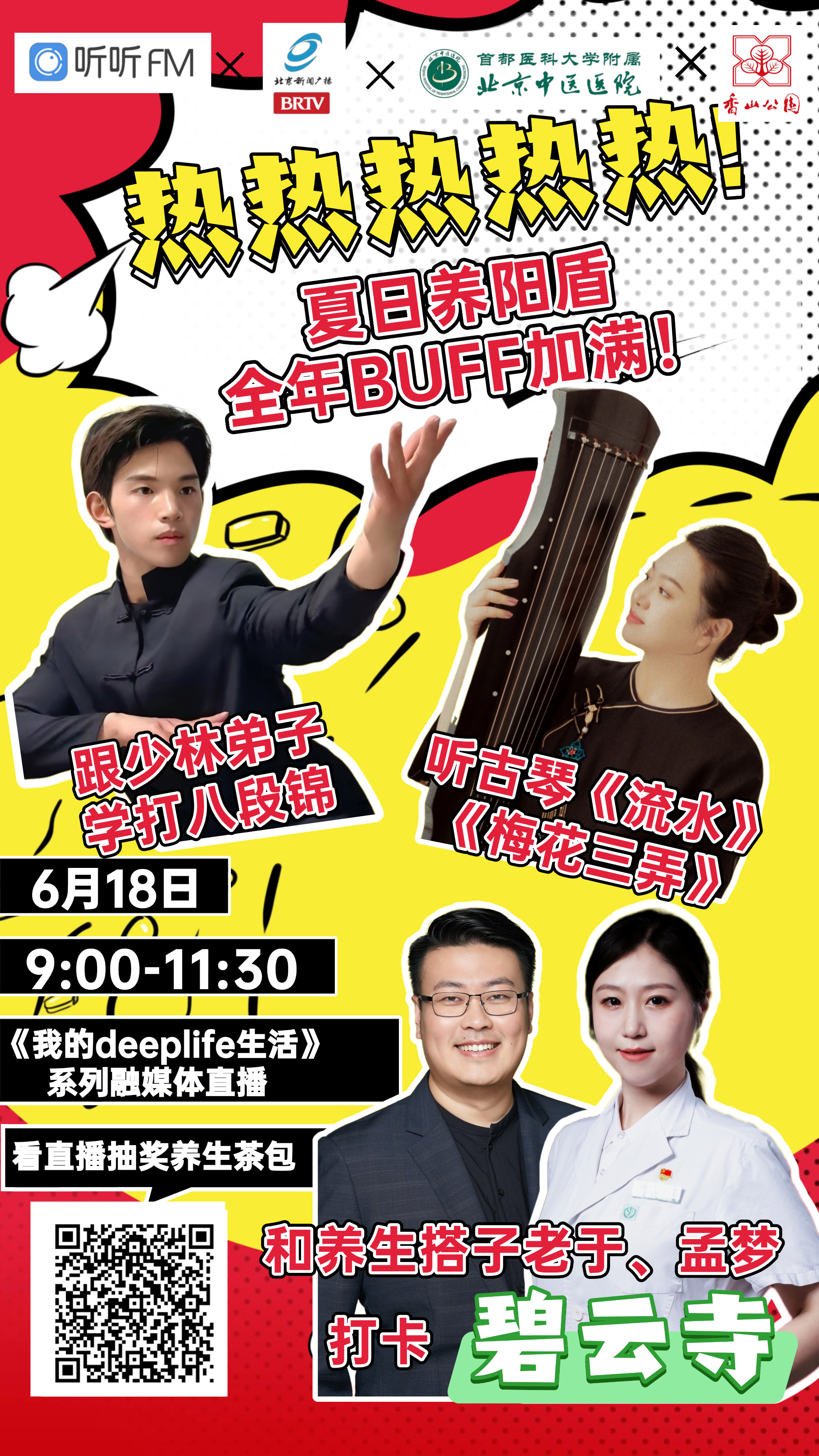 6月18日9:00,首都医科大学附属北京中医医院消化科副主任医师孟梦做客北京新闻广播科普直播间,一起云打卡碧云寺,讲解夏日养阳~