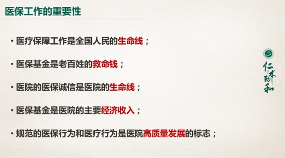 医保管理是一项全面综合的工作,涉及到医疗服务的方方面面。杜琨处长在培训中重点列出了日常管理的13个关注点和飞行检查中的8个聚焦点,并就日常工作中常见的医保政策理解偏差等突出问题进行了纠正,为全院医务人员如何在临床工作中持续规范医保行为和医疗行为明确了政策要求和行动指南。