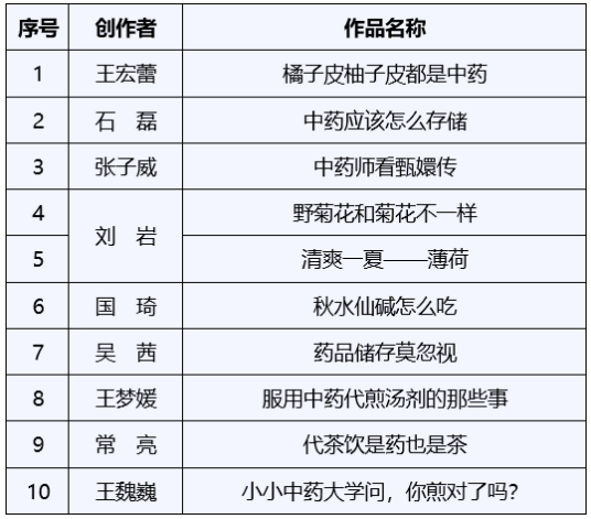 药学部王宏蕾、石磊、刘岩、张子威、国琦五名药师组成团队,在吴剑坤主任的指导下,以《此神曲非彼神曲》为题,进行剧本创作、角色表演、现场拍摄、后期剪辑,作品展示了中药六神曲“取其地,采其时,尊其古,炮其繁”的独特制备工艺,结合互联网用药咨询服务,为患者解答六神曲的相关问题,宣扬中医药文化知识。最终在科普汇演环节经过激烈的角逐,在全国20个药师科普强队中获得第5名的好成绩。
