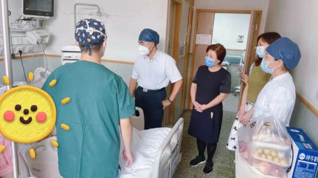 “您的爱人在前方守护病人,您的健康由我们来守护。一定要好好休养,保重身体,不要有后顾之忧。有任何困难都可以向组织提出来,医院永远是奋斗在前线医务人员的最大保障。”术后,党委书记董杰昌、党委专职副书记温淑兰、副院长刘东国先后到病房探望,刘清泉院长为患者把脉,开具中药治疗处方。