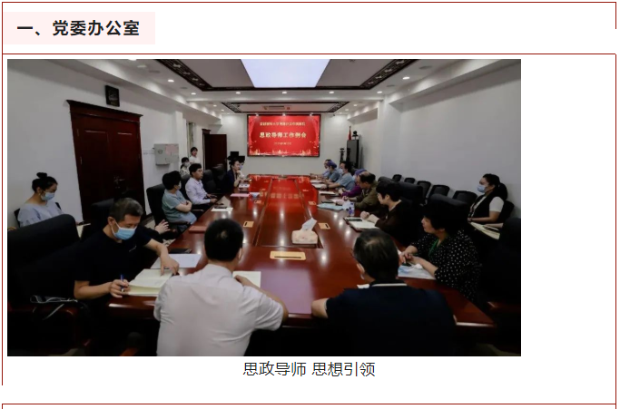一年来,党办按照党委工作部署,认真抓好教育一、二、三党支部建设、党员发展、学生思想政治教育等工作。党办配合教育一党支部及教育处,完成医院思政导师遴选、工作会议召开等工作;配合德育教研室完成教师集体备课、课程讲授、教案设计材料上报等工作;按照上级部门要求,联合教育处及教育3个党支部,完成50名支援丰台核酸采集任务队员选派工作,并积极协调物资,同时做好选派学生思想及心理疏导工作。