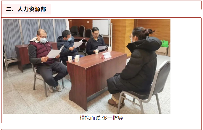 人力资源部通过教师资格认定和教学职称评审等工作,加强我院教师队伍建设。利用其丰富的面试经验,每年对毕业生进行就业指导和培训,提醒同学们面试工作中应当注意的问题,同时还派出多名面试官,参与模拟面试工作,通过一对一的面试辅导,指出同学们在简历书写格式、面试着装和仪态、回答问题的语气和逻辑性等方面存在的问题,鼓励他们深刻认识自己的优势和劣势,灵活运用所学的各种知识,充分展示自己的才能,增强同学们的自信心,经过充分的准备和锻炼,使他们在激烈的就业竞争中抢得待机,更好的迈好走向社会的第一步。