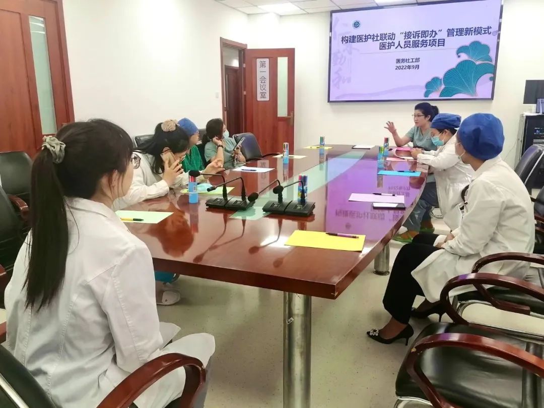 9月23日,医患关系部(医务社工部)开展了“构建医护社联动‘接诉即办’管理新模式”医护人员服务项目第一次社会工作小组活动。该项目旨在提升医院人文管理水平,以解决患者诉求、提高患者满意度为抓手,以医护人员感知性评价和工作效能提升为导向,以运用社会工作专业方法为路径,进行医疗服务的有效改善。