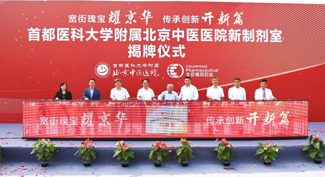 9月29日,首都医科大学附属北京中医医院新制剂室举办揭牌仪式。国医大师金世元教授,怀柔区人民政府区长于庆丰、副区长季学伟,北京市药品监督管理局党委书记于海波、副局长屈浩鹏,北京市医疗保障局副局长孙德尧,北京市中医管理局副局长罗增刚,北京市医院管理中心药事处副处长王文凤,首都医科大学中医药学院党委书记龚慕辛、院长王伽伯,首都医科大学附属北京中医医院党委副书记、院长刘清泉,北京春风药业有限公司董事长耿春风及北京市药监局、怀柔区医保局、市场监督管理局、卫健委,北京中医药学会、来自北京市20余家医疗机构药学部的领导和嘉宾参加了本次揭牌仪式。北京中医医院主管药学院领导徐春军主持揭牌仪式。