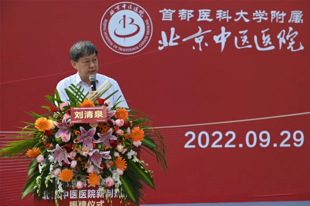 新制剂室揭牌仪式上,北京中医医院党委副书记、院长刘清泉在致辞中指出,在国家支持医院制剂与中药发展的大好时机下,要充分总结经验,大力发展医院制剂,既要多出成果,又要转化成果,服务人民健康。新制剂平台是共享平台,希望各兄弟单位与我院能够深化合作,共同打造高质量的医院制剂“供应、传承、创新、转化”体系,在十四五发展期间作出更大贡献。