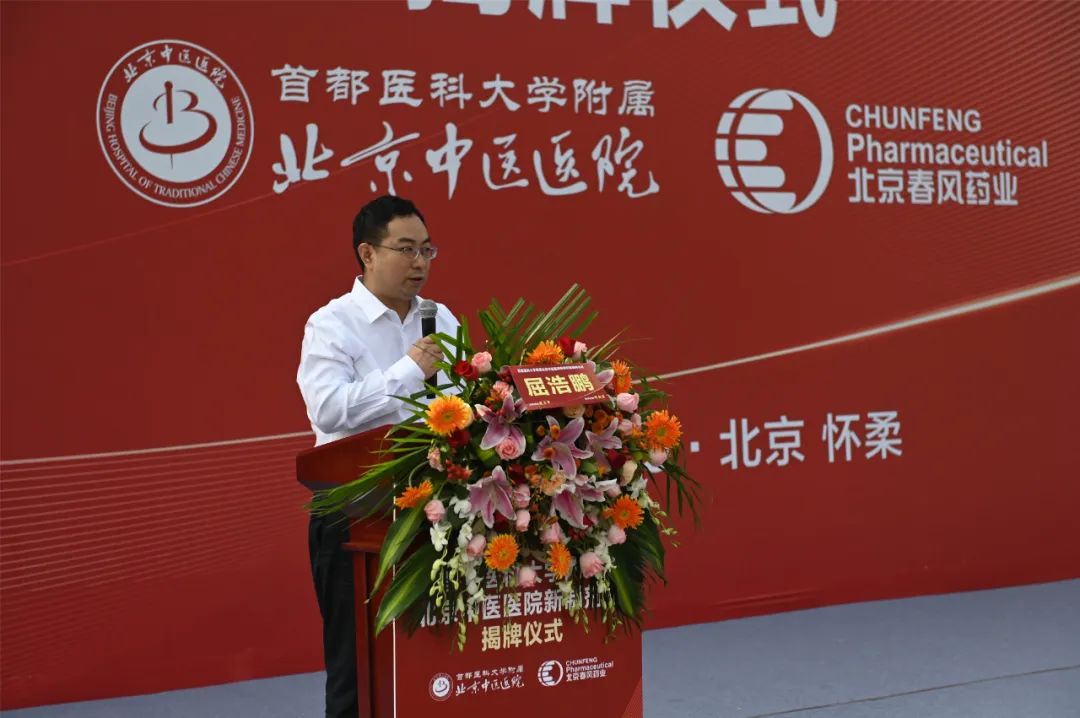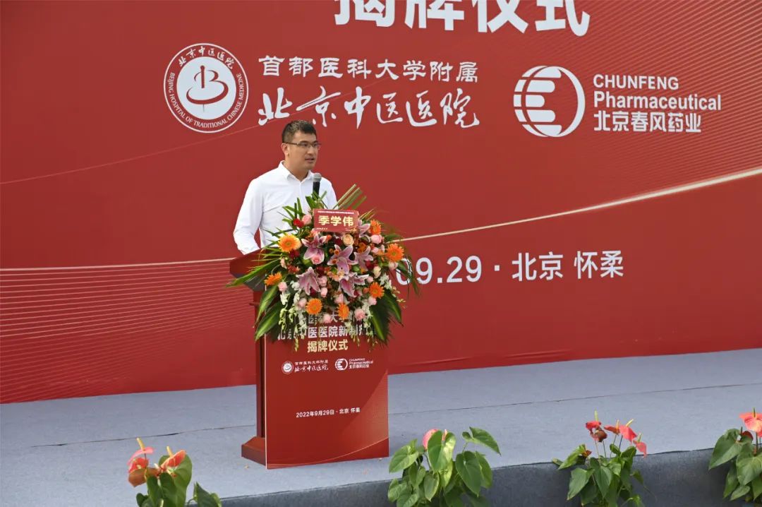 作为我院新制剂室服务保障伙伴,北京春风药业有限公司耿春风董事长致辞表示,作为高新技术医药实体企业,春风药业积极响应国家中医药发展号召和政策,希望通过合作,协同创新,共同推动医院制剂传承发展,共创共赢。