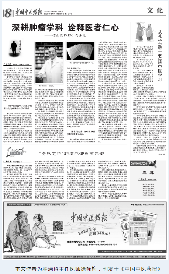 闻名海内外 为中医肿瘤学科发展奋斗终生