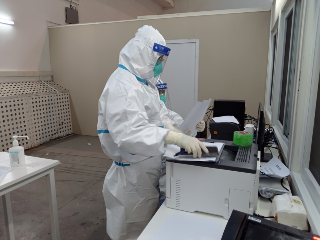 160位医务人员组成的医疗队被迅速分成多个工作小组。医疗组、护理组、感控组、党建工作组、后勤保障组、患者服务保障组、信息数据保障组……一个“小医院”的架构应运而生。方舱内每6小时一班,每班由3位医生和12位护士组成。23日凌晨1点15分,W4舱迎来了第一批感染者。寒冷的冬天,医务人员需要快速登记每一位感染者的信息、询问病情并他们安排入舱位。