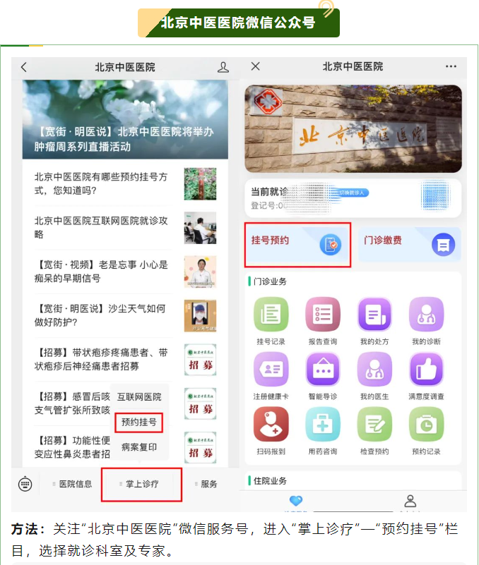 北京中医医院目前同时提供医院官方微信公众号预约、院内自助机预约、北京市预约挂号统一平台预约、支付宝预约、医生工作站诊间预约等多种途径提供挂号服务,方便您提前预约。