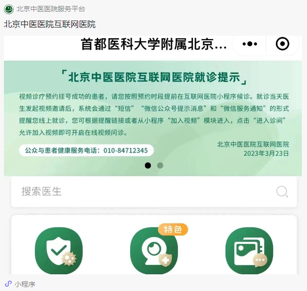 手机微信扫一扫,进入北京中医医院互联网医院小程序,足不出户享受三甲医院一站式诊疗服务