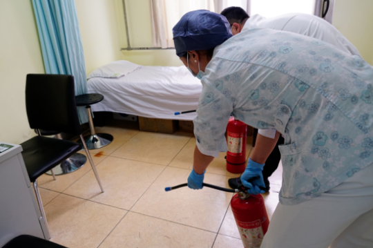 4月28日,我院在病房楼针二病房再次开展消防实战化演练培训活动。通过门诊、病房的联合消防演练,进一步强化了医院职工的消防安全意识,切实提高了自救互救能力,充分检验了医院消防安全应急预案的可行性和操作性,为医院今后开展消防应急救援工作奠定基础。