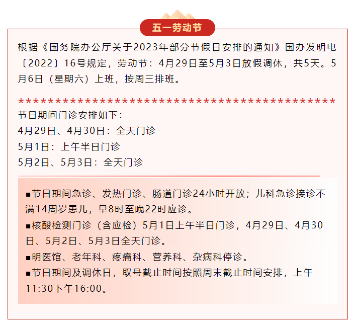 宽街·便民 | 2023年劳动节门诊安排