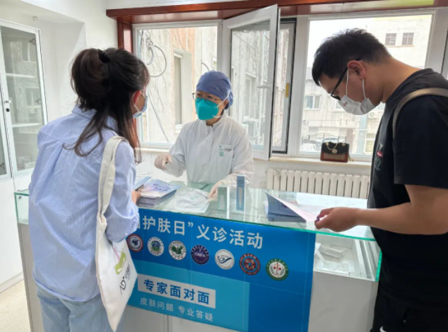 皮肤科主任医师曲剑华、杨岚,副主任医师吕景晶、曹洋、王倩、朱慧婷,主治医师刘荣奇、金奇英、马卉、蔡一歌,住院医师赵子赫在义诊活动中为患者解疑答惑,现场发放了护肤科普手册及相关护肤宣传资料,受到广大患者一致好评。