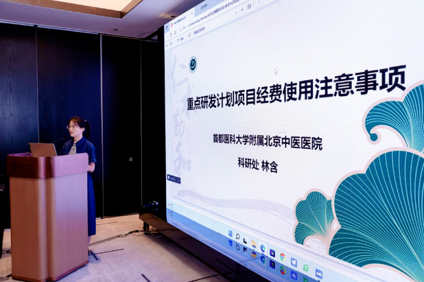 北京中医医院科研处林含就“简政放权、放管结合、优化服务”原则介绍了项目经费的管理及使用注意事项。