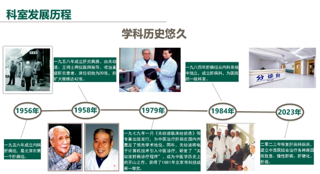 首都医科大学附属北京中医医院肝病科是全国中医医院历史最悠久的肝病专科之一,由燕京医学流派的中医大家关幼波、王鸿士等创建。目前是中华中医药学会肝胆病专委会主任委员,北京中医药学会肝胆病专委会主任委员单位。北京市中医管理局“关幼波名医工作室”、“王鸿士名医工作室”挂牌科室,作为北京市中医治疗肝病门诊量最大的科室,科室年门诊量5万余人次。培养在读硕士及博士研究生40余人,承担北京中医药大学及首都医科大学中医肝病相关教学内容。