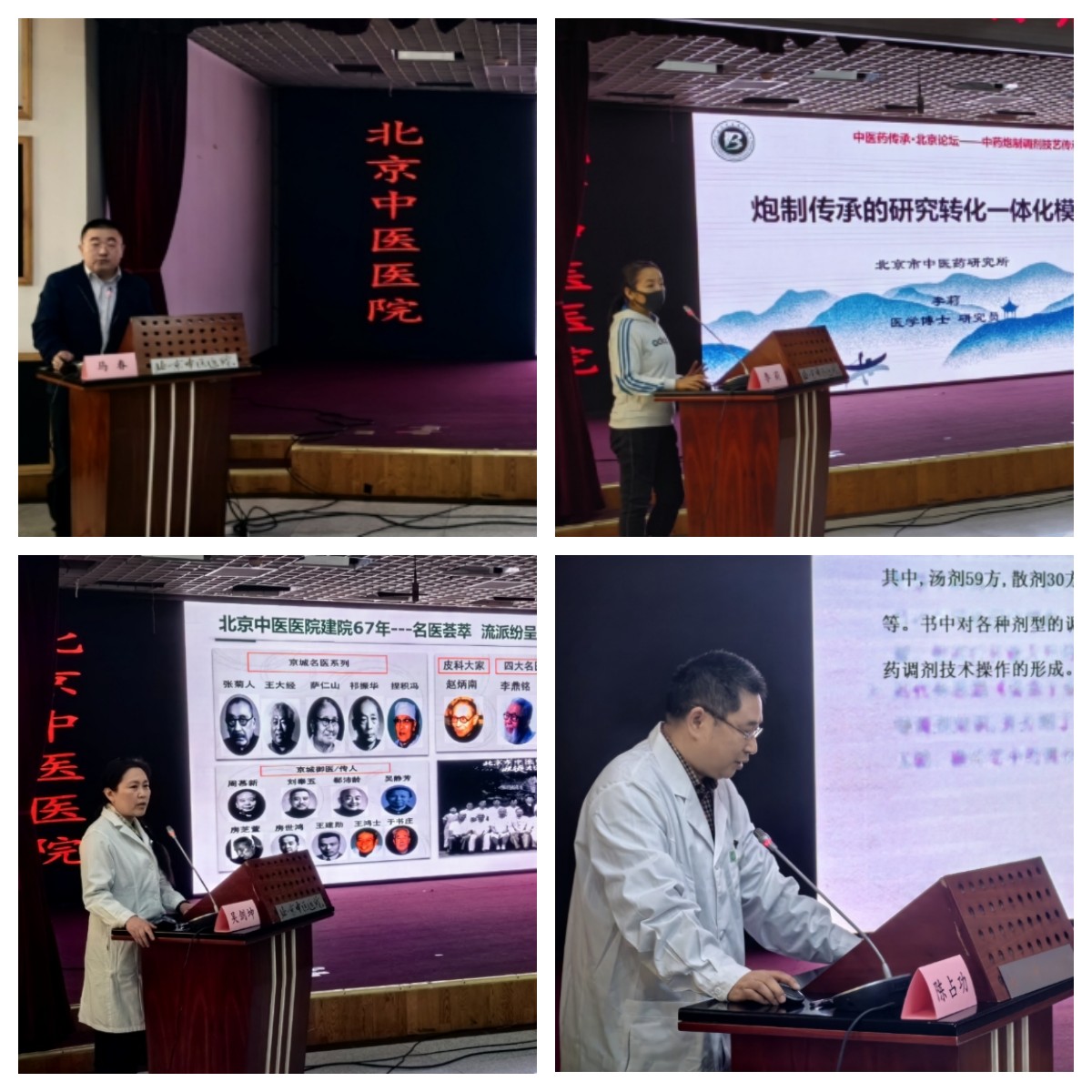 本次会议由北京中医药学会主办,北京中医药学会中药炮制、中药调剂专业委员会、北京市中医药研究所国家中医药管理局中药炮制技术传承基地共同承办。北京市中医药研究所副所长李萍、北京中医药学会中药调剂专业委员会主任委员张萍和北京中医药学会中药炮制专业委员会主任委员吴剑坤担任大会主席。大会由北京市中医药研究所临床科研中心负责人赵京霞研究员、北京中医药学会中药调剂专业委员会高峰秘书长主持。北京中医药学会秘书长杨娜出席会议。线下参会人员达100余人次。