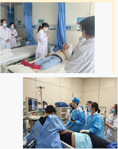 挂职副院长沈晨深入病房开展示范性教学查房,并对在北京进修过的医师进行疑难病例讨论现场考核;吴震宇进行了内镜诊疗实操指导。
