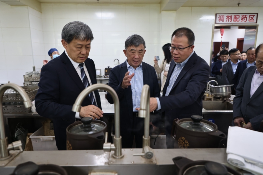 澳门卫生局一行实地参观我院明医馆、门诊煎药室、“至善铭”文化墙、中药房调剂室、针灸科等处,院长刘清泉介绍了医院的发展历史、门急诊医疗工作、中药调剂等情况。