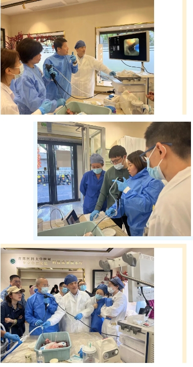 培训中采用动物肺和肺模进行实际操作练习,确保医师们能够熟练掌握支气管镜的操作技巧。