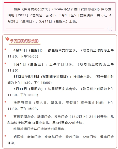 宽街·便民 | 北京中医医院2024年“五一”劳动节假期门诊工作安排
