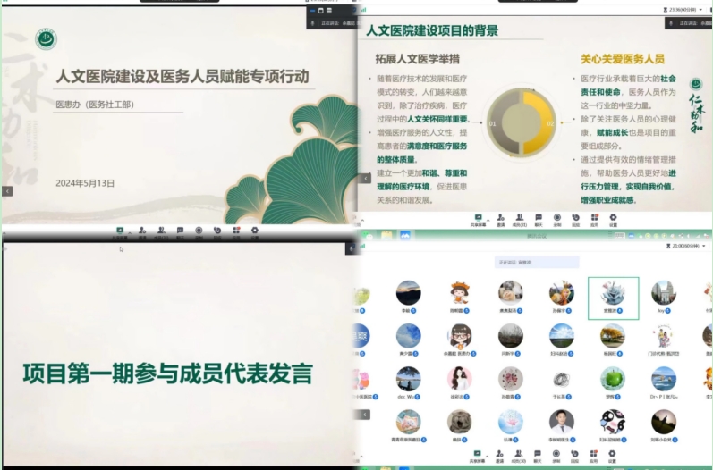 依托该项目,我院医患办(医务社工部)于2024年5月组织开展人文医院建设专项行动。医院对人文建设工作给予高度重视,组织召开专项行动会议,旨在深入研讨并推动人文建设措施的有效实施。