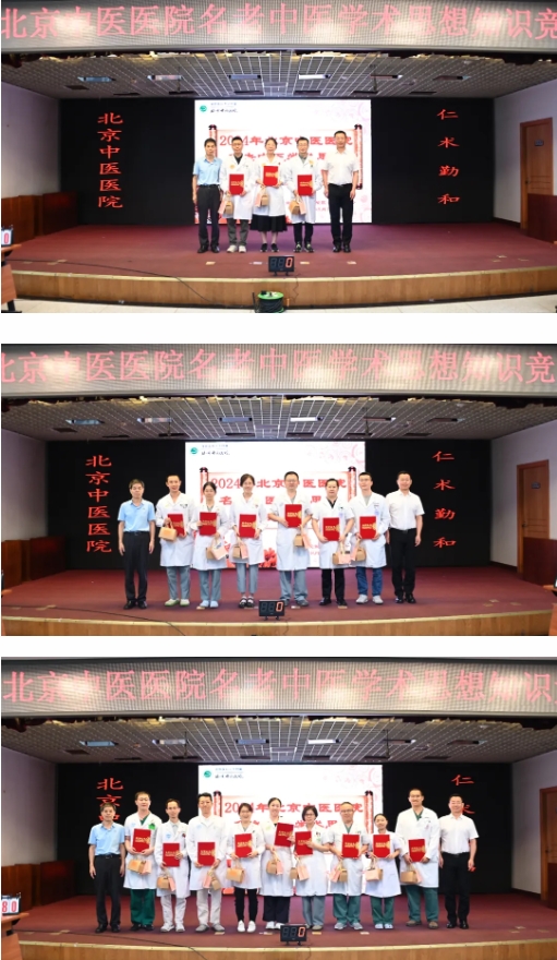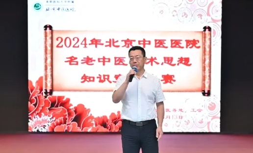 为迎接第七届中国医师节,促进名老中医学术思想的传承与发展,8月13日,首都医科大学附属北京中医医院“名老中医学术思想知识竞赛”决赛顺利举办。党委书记刘中勋,党委副书记、院长刘清泉,党委副书记、纪委书记程军,党委委员、副院长杨国旺,总会计师吴光清,党委委员、工会主席徐春军,研究所副所长李萍出席活动。