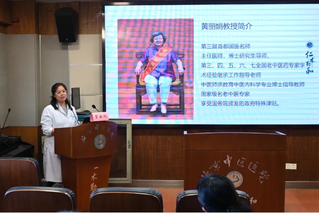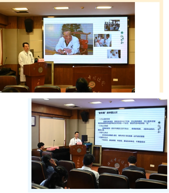 心血管科主任尚菊菊主讲了《孟河医派之燕京名医老年疾病防治特色》,梳理了孟河医派的历史传承脉络和学术特色,深入剖析了名医许心如的学术经验,为学员们提供了丰富的历史背景和学术参考。