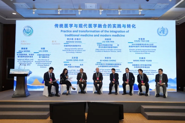 在交流环节,中外专家学者围绕传统医学与现代医学融合的实践与转化,就尤纳尼医学与中医学的融合、中医症候规范化研究与实践、传统医学与现代医学融合干预神经-精神损伤现状、眼疾病防治、传统医学人才培养、传统医学手段重大疾病防控、传统医学与现代医学药物有效性等议题进行深入交流。该环节由世界卫生组织传统补充和整合医学处Alice WONG、中国中医科学院广安门医院党委书记刘震共同主持。