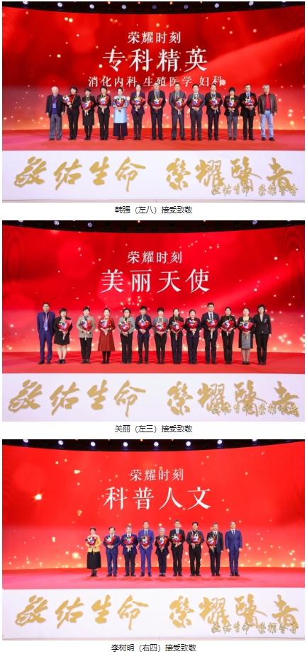 首都国医名师黄丽娟获中华医药贡献奖,男科副主任韩强获专科精英奖,护理部副主任关丽获美丽天使奖,疼痛科副主任李树明获科普人文奖。