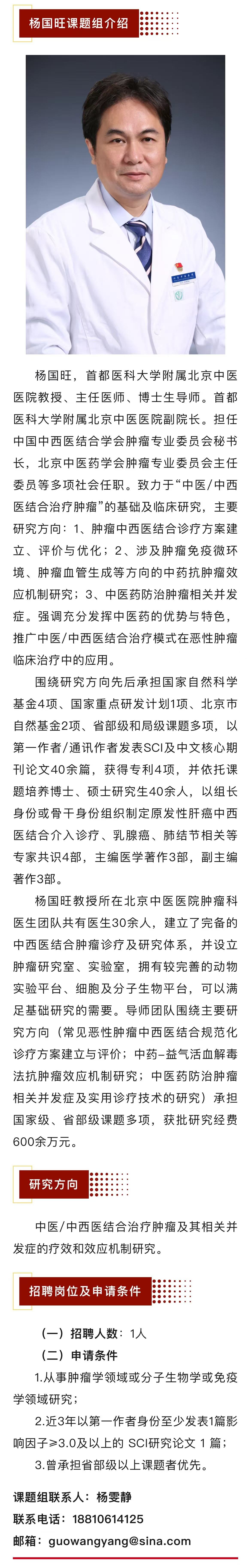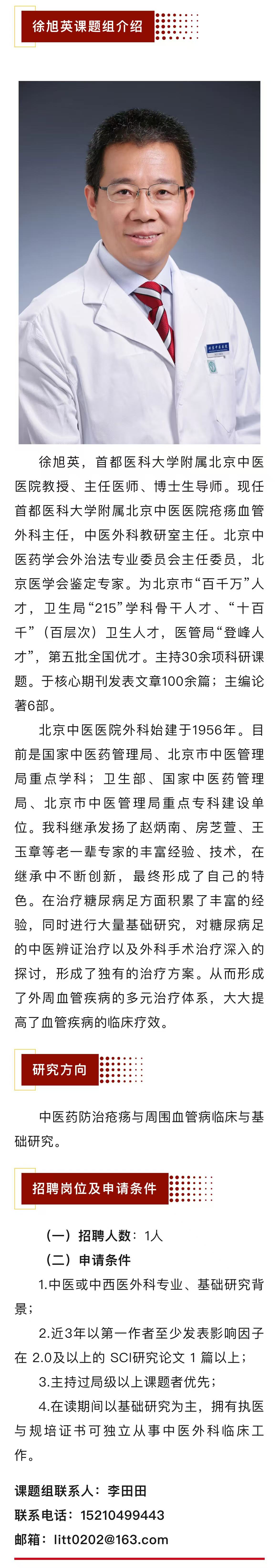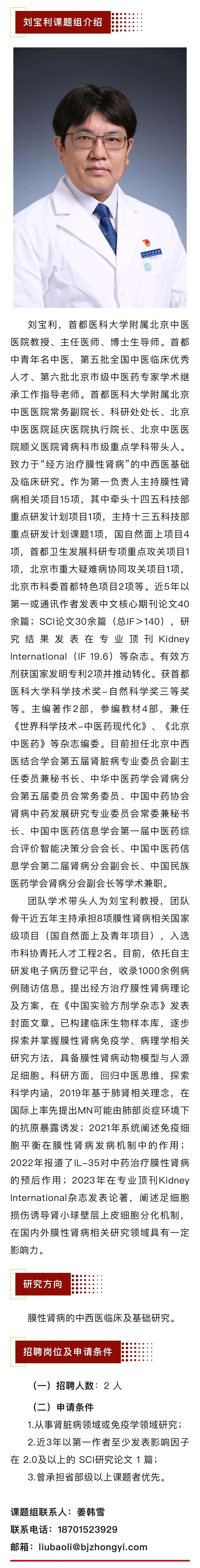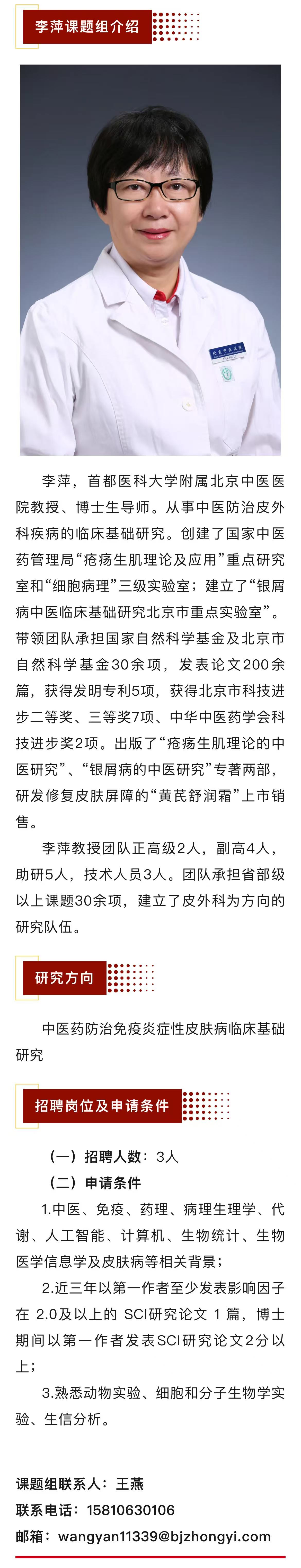 申报者与意向导师沟通后发送个人应聘材料电子版到邮箱:rlzyb@bjzhongyi.com,邮件请以“博士后申请应聘材料-申请导师姓名-本人姓名”为标题进行报名。