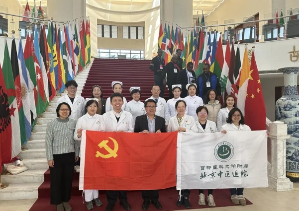 近日,应商务部国际商务官员研修学院邀请,首都医科大学附属北京中医医院教育处处长王鹏带领长期参与院援外培训项目的医生、护士等10余名党员赴研修学院举办联合党建活动,研修学院副院长邹传明,党委副书记、纪委书记郑乐出席活动。来自研修学院的百余名职工齐聚一堂,活动通过内容丰富的中医药文化体验,展现了党建引领下传统医学的独特魅力,进一步促进了跨领域的中医药文化交流与合作。