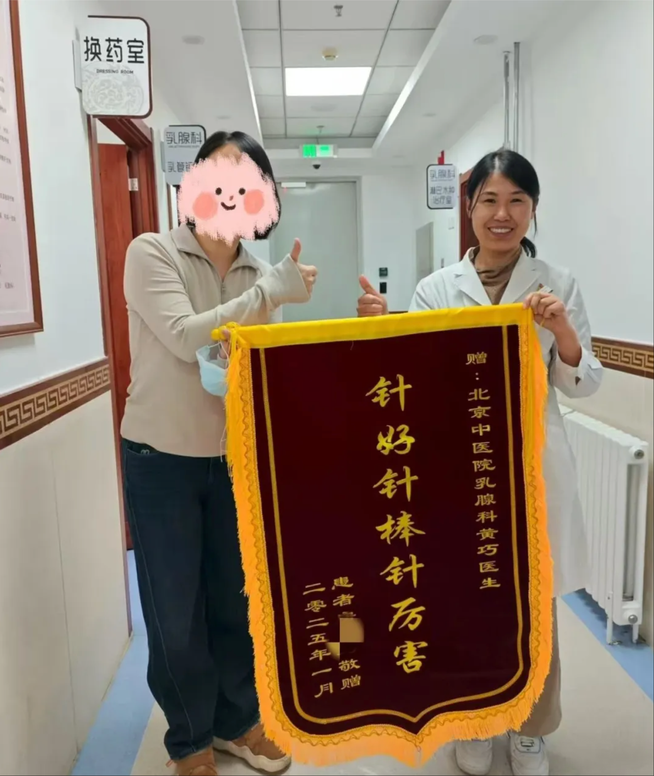 黄巧曾接诊过的一位浆细胞性乳腺炎患者,自患病以来,乳房肿块难消,溃口经久不愈,脓肿引流不畅需要反复切开排脓或穿刺引流,患者痛苦不堪。黄巧采用北京中医医院特色火针疗法,患者接受治疗一周后破溃面积明显缩小,肿块变软。四次治疗后,不仅破溃面愈合,超声显示病灶接也明显缩小接近消失。患者开心又激动,赠送锦旗感谢医疗团队帮她保住了乳房和外形。