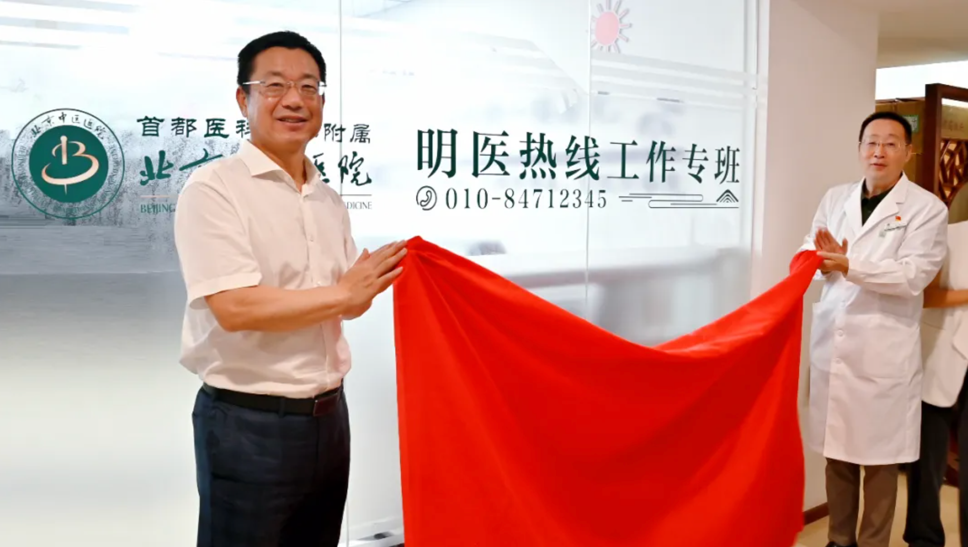 9月5日,首都医科大学附属北京中医医院“明医热线”工作专班揭牌仪式举行。党委书记刘中勋、副院长汪红兵出席仪式,医务社工部、门诊部、总务处、信息中心、北京首都中医医疗科技开发有限公司等部门负责人共同见证了医院患者服务体系升级的重要时刻。