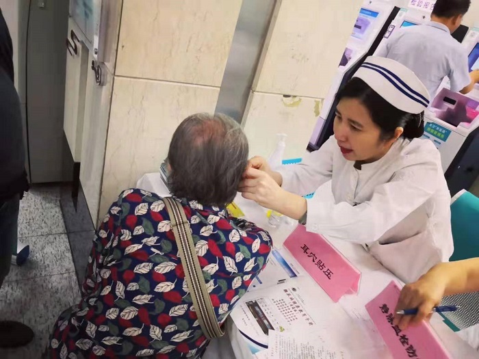 活动中,大外科专家团队开展疝病科普知识讲座,将“勿以疝小而不为”的观念深入人心。随后,为相关患者进行了现场的咨询、指导及答疑,并为需要手术治疗的患者现场办理了预约住院手续。整个活动过程中,六个院区同步直播,并进行线上的交流、咨询与答疑。此外,护理团队还为患者进行了耳穴压丸、穴位贴敷及静脉血栓防止等特色中医诊疗。(外科)
