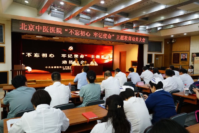 信彬书记首先代表院党委宣读《中共首都医科大学附属北京中医医院委员会关于开展“不忘初心、牢记使命”主题教育的实施方案》。明确此项工作是深入贯彻《中共中央关于在全党开展“不忘初心、牢记使命”主题教育的意见》和习近平总书记在中央主题教育工作会议上的重要讲话精神,并结合医院实际提出工作要求。