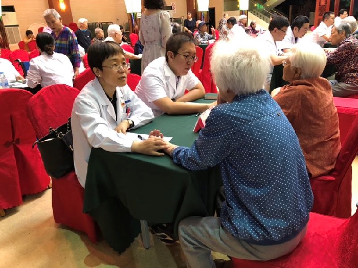 各支部抽调技术骨干,在现场组织了一支包括心脑血管疾病,内分泌科与代谢性疾病,消化系统疾病,骨关节疾病等多种老年常见病诊疗的“豪华”专家团队,为老年人讲解了心脑血管疾病、消化不良、退行性骨关节病等多种疾病的中西医防治知识。心脑血管疾病,代谢性疾病是老年人的常见病、多发病,临四支部书记、内分泌科主任尚菊菊带领专家团队为老年人耐心讲解心脑血管疾病的防治知识,接受老年人的健康咨询,并为老年人免费测量血压、血糖,进行中医体质辨识及个性化中医健康指导,发放健康教育宣传材料等。